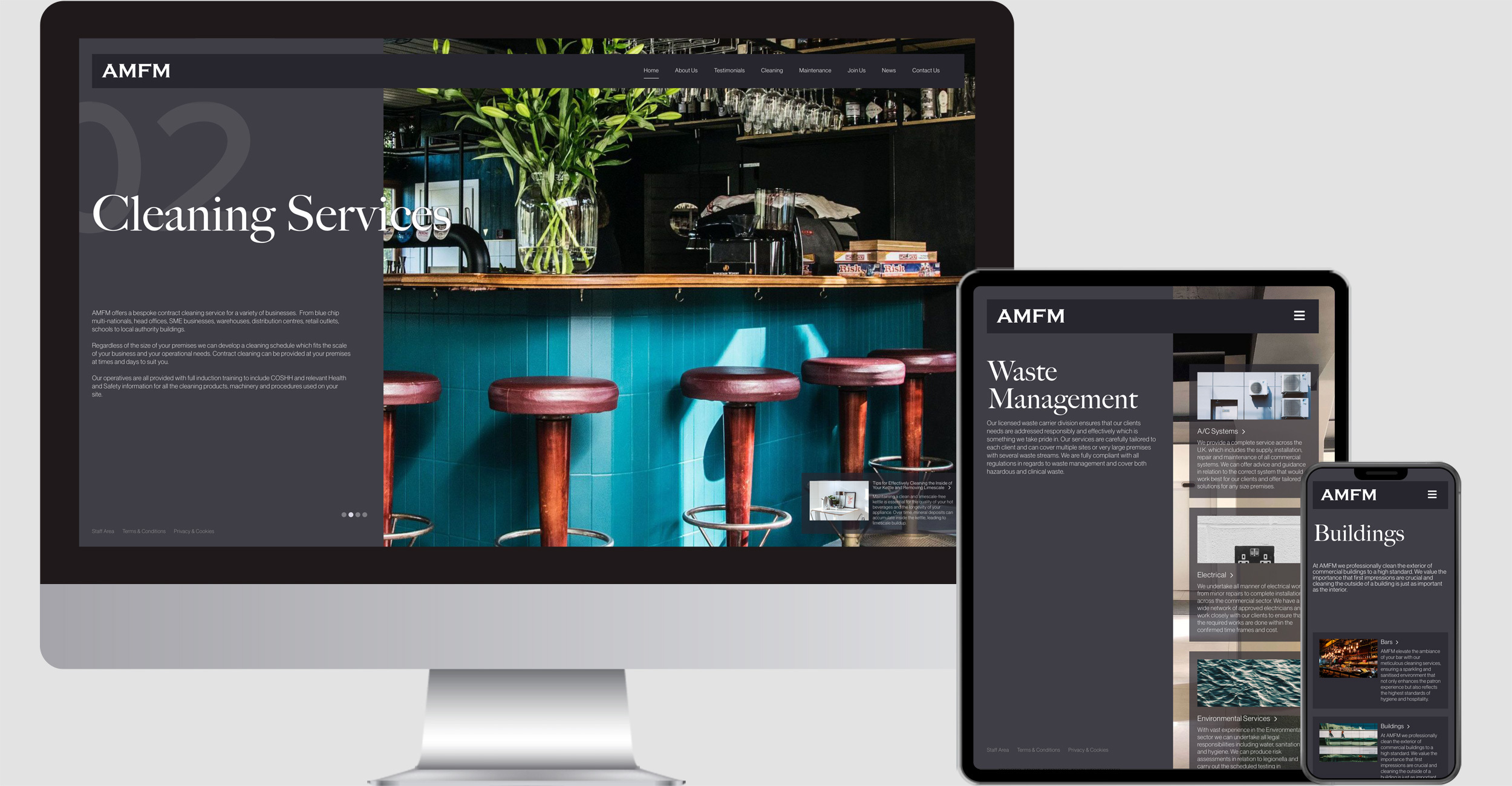 The brief was straight forward, which sometimes is the hardest to deliver. Every site we develop we achieve a unique level of design, marrying good practice and logical formats with innovative styling. This website really achieves this blend. The images AMFM used are perfect to contrast with the grey shades and chunky text elements on the home page.
